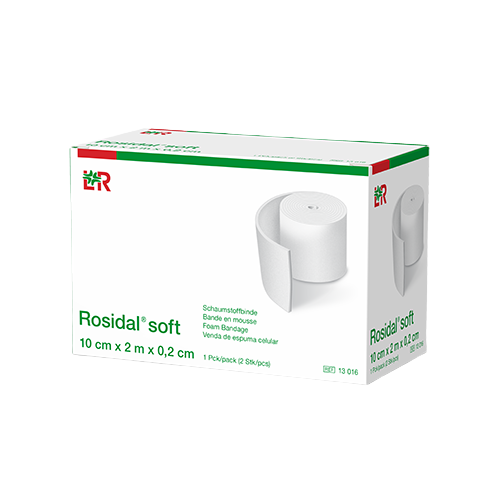 Washable, non-slip padding helps provide added comfort and even pressure distribution of compression bandages over the extremities. As a result, Rosidal soft is ideally-suited as padding under compression bandaging in lymphedema and phlebology.